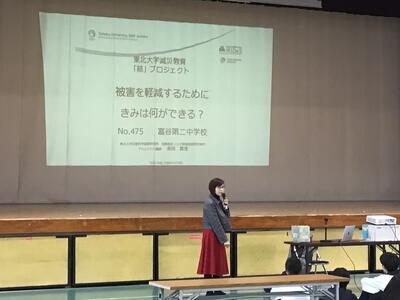 東北大学災害科学国際研究所 保田真理 先生をお迎えして前半に講話を聴き、後半に「アワタラ」というゲームに取り組みました。