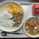 本日のメニューは、そぼろ丼(とみや米の麦ごはん、たまごそぼろ、肉そぼろ) 、みそけんちん汁です🍴