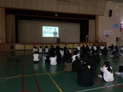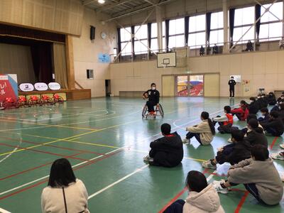 1月12日に2学年PTA行事として「あすチャレ!スクール(主催:日本財団パラスポーツサポートセンター)」を行いました。講師には、男子車いすバスケットボール元日本代表選手の神保康広さんをお招きし,車いすバスケットボールを体験させてもらったり、講話をしたりしていただきました。