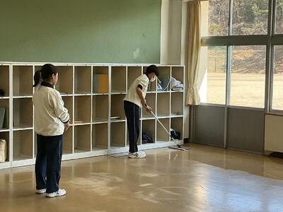 年度末にあたり、教室の床磨きを各クラス全員で行い、その後教室のワックスがけをしました。
