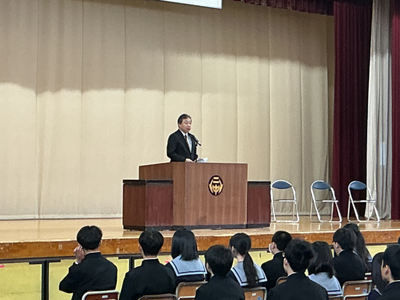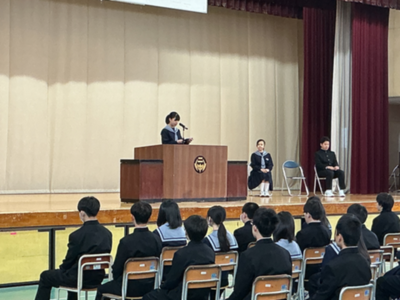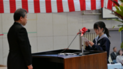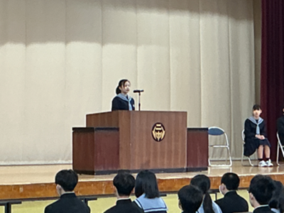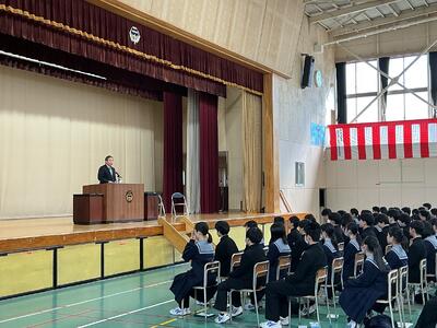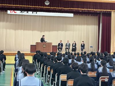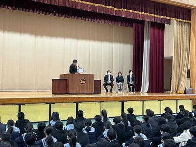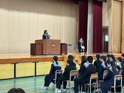 この春休みは、成長した未来の自分を想像し、目標を具体的な言葉にして、一人一人が上級生になる心構えを築いてほしいと思います。そしてひとりひとりが二中の素晴らしい先輩になってください。」